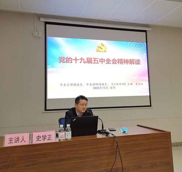 2020年12月17日,深圳市委讲师团团长史学正同志来到市科协宣讲党的十九届五中全会精神,市科协机关和事业单位全体工作人员、科技类社会组织联合党委党员参加集体学习活动,会议特别邀请市科协“一对一”结对共建的桃源街道和社区的党员代表一起参加学习,在今后工作中深入贯彻落实全会精神。