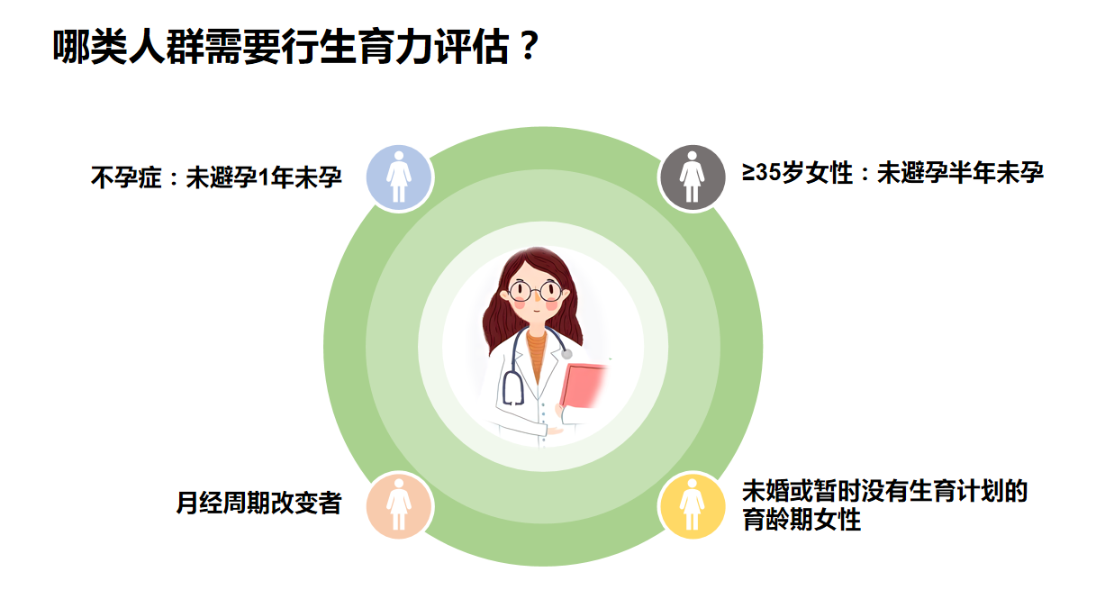 介绍什么是生育力? 生育力就是能够生育活产婴儿的生理能力 什么样的人需要评估生育力呢? 孕龄期的男女性、一年都没有怀上不孕不育夫妻;年龄超过35岁的女性和男性大于40岁的高龄夫妻;卵巢做过手术或者有肿瘤或者做过化疗等;月经紊乱、闭经的女性