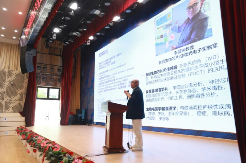 李晨钟院士首先分享了在生物电磁学、生物芯片与传感器、类器官与器官芯片等前沿领域的科研经历,生动阐述了纳米尺度中的奇妙现象、碳材料的发展历程以及生物芯片技术的重要进展。