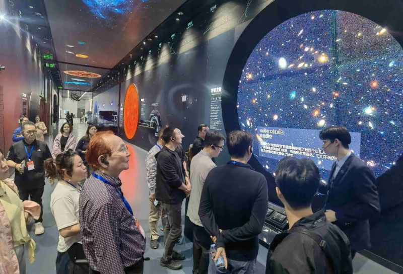 「2025世界华文媒体社长总编辑深圳行」嘉宾在深圳科学技术馆留影