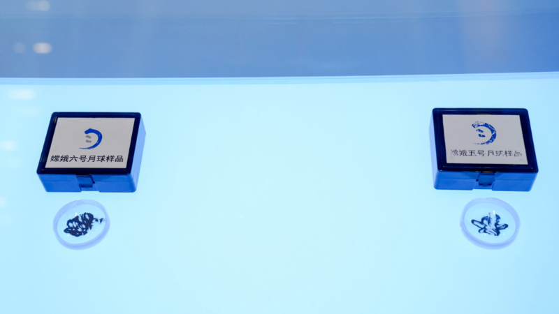 展台上,嫦娥五号从月球正面吕姆克山脉带回的月壤,与实现人类首次月背采样的嫦娥六号所获样品形成鲜明对比。据悉,嫦娥六号采集的月背样品不仅颜色略浅、堆积密度更小,其源自月球最古老陨石撞击坑 —— 南极-艾特肯盆地的特殊出身,更为月球演化研究提供了关键样本支撑。