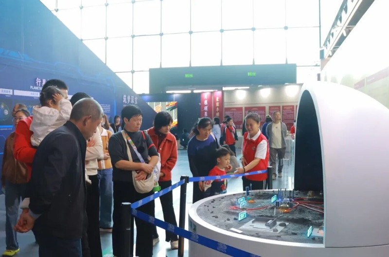 作为本次双展的“星空焦点”,“九天揽月-中国探月工程成就展”以“科技+科普、成就+文化”为核心主线,通过实物、历史档案及互动装置,完整梳理了2004年探月工程立项以来的发展脉络。