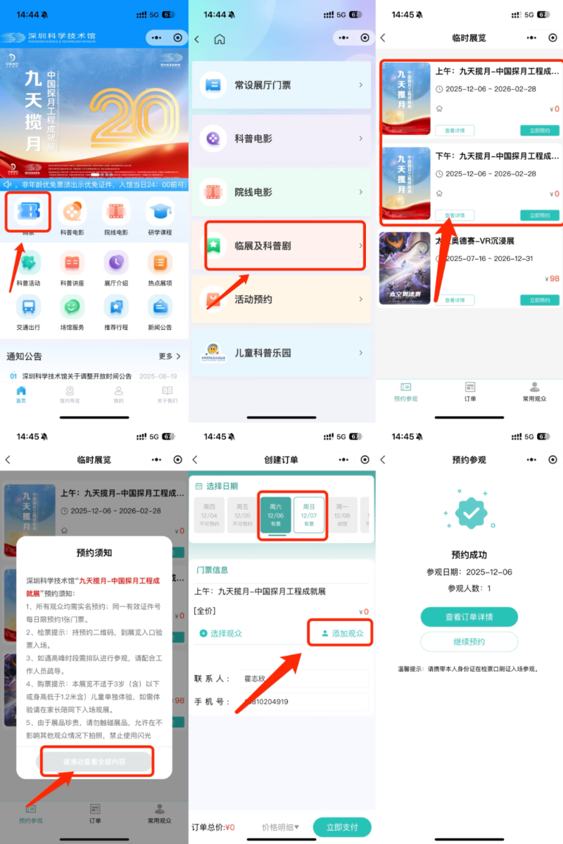 中国探月工程成就展:为保障优质观展体验,需通过「深圳科学技术馆」小程序提前预约,预约通道现已开放,点击购票-临展及科普-选择时间段“预约”,锁定关注,抢先一步!