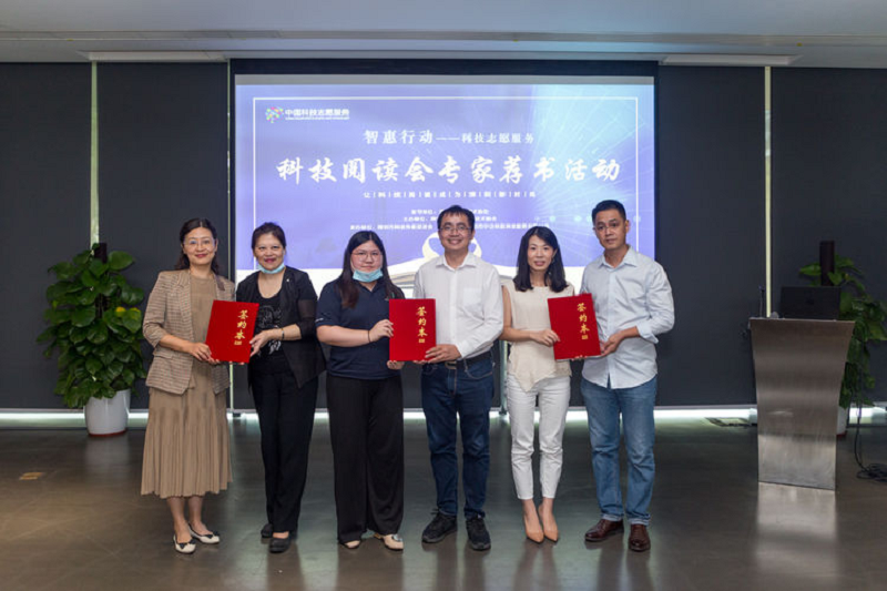 9月30日下午,由深圳市科学技术协会指导,南山区科学技术协会主办、深圳市科技传播促进会承办、深圳市中企科创科技服务有限公司协办的2020年智惠行动——科技阅读会专家荐书活动,在深圳湾人才公园求贤阁举行。南山区科协副主席殷明华与市科协科普部吴欢分别为领读专家们颁发了《科技阅读会》领读人证书,为组建的科技志愿服务队授予了队旗。