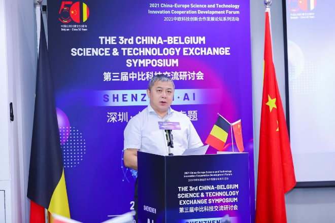 10月29日下午,2021中欧科技创新合作发展论坛预热活动-第三届中比科技交流研讨会深圳专场活动在中国和比利时以线上线下的形式同步举行。本次活动以人工智能为主题,邀请了中比两国科技界、产业界和学术界等领域的专家、学者共同探讨人工智能领域发展状况及行业趋势,交流科技合作经验和成果。深圳市科学技术协会党组成员孙楠、比利时驻广州总领事馆瓦隆地区商务处科技领事Didier Denayer出席活动并致辞。比利时法兰德斯投资贸易局、比利时瓦隆大区外贸与外国投资总署(AWEX)、比中经贸委员会(BCECC)、世界绿色设计组织(WGDO)、深圳市人工智能学会、深圳市天使投资引导基金管理有限公司等有关机构、企业、科技组织等负责人参加活动。