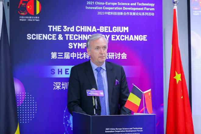 孙楠在致辞中表示,2021年是中比建交50周年,中国与欧洲地区国家建交多年,建立了坚固的战略合作伙伴关系,中欧科技合作是中欧全面战略合作伙伴关系中的核心内容和重要组成部分。深圳市科协一直在致力于推动与比利时等欧洲国家的科技交流与合作,努力打造中欧产学研合作平台。希望汇聚各界力量,开展更多领域更深层次的科技交流,共建中欧科技协同创新网络,与大家共享中欧、中比发展机遇,实现互利共赢共同发展。